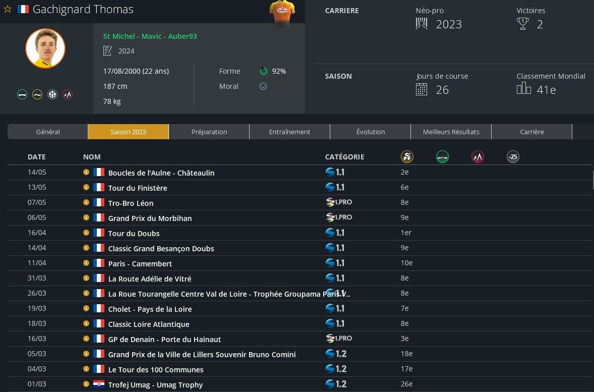 Et en World Tour ?Résultats